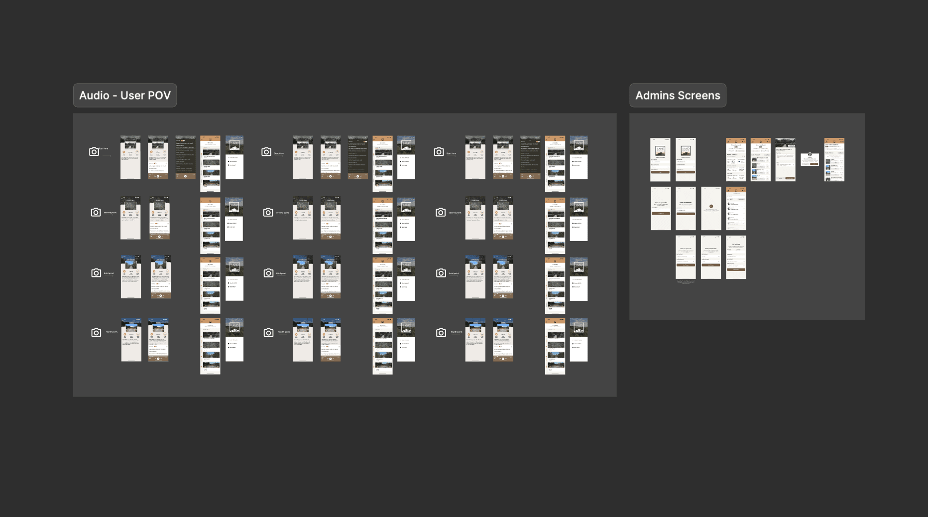 Building on our research findings, each team member explored various screen concepts tailored to an audio mobile tour app. Much of our inspiration came from existing museums, hiking, and fitness tracking applications.